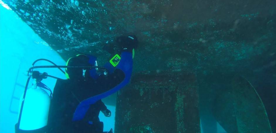 Underwater ultrasonic thickness gauge can be used to measure thickness of metal and many other solid materials, so this instrument is perfect for measuring thickness of remaining metal in ship hull structure and plating, while the vessel is still being in water. Our experienced diving team will provide a high level and low cost inspections while ensuring the integrity of the ship's materials and complying with the permitted limits of international standards for the thickness of the plates during their exposure to seawater.